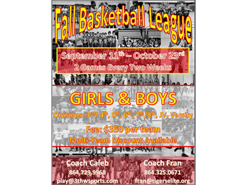 Get your team sign up for the best Fall league in the Upstate. We will have talent from SC/GA/NC this year. We also will have plenty of High School Talent on Display. All games will be at First Baptist on Cleveland street. This will consist of an 8 week League. ALSO THIS YEAR WE WILL HAVE AN ALL -STAR GAME WHEN THE LEAGUE WRAPS UP!!!! Make sure your players to bring it. We are going to set the bar for Leagues and Tournaments here in the UPSTATE! LET US PUT OUR TALENTS ON DISPLAY