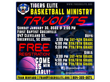 Tigers Elite Basketball tryouts..We have grown every year since we have started and expect the same because of the FOUNDATION and INTEGRITY we are built and founded on. When you stay true to your mission and vision, we will always prevail.